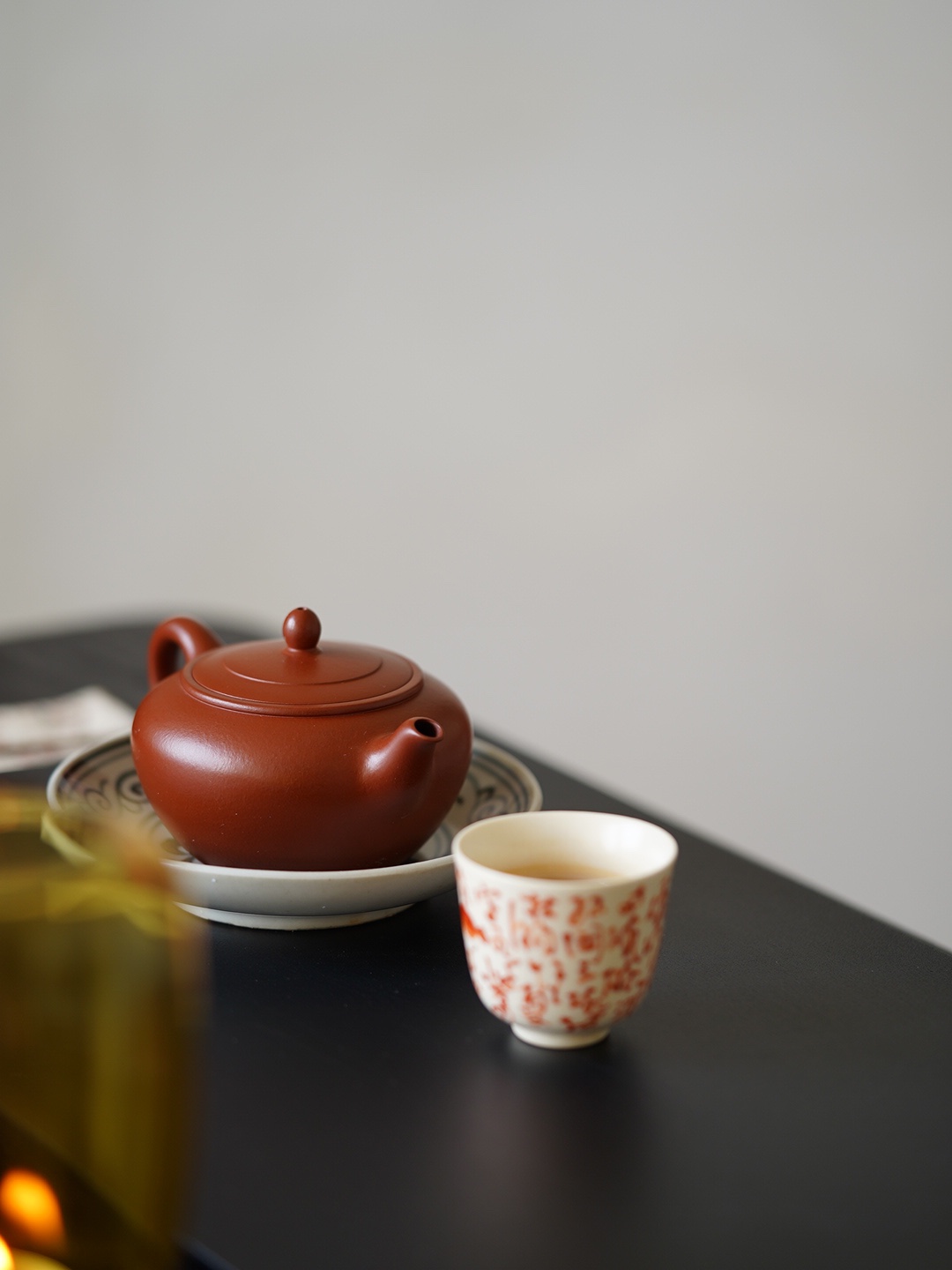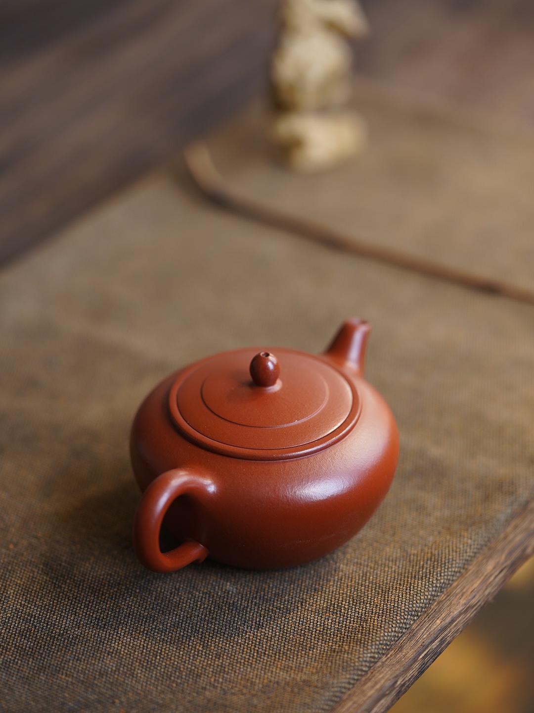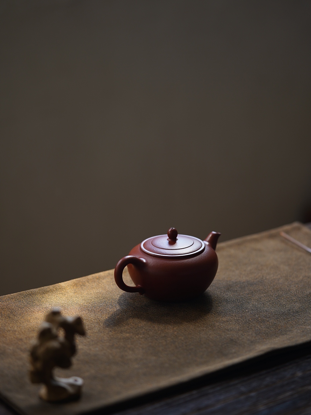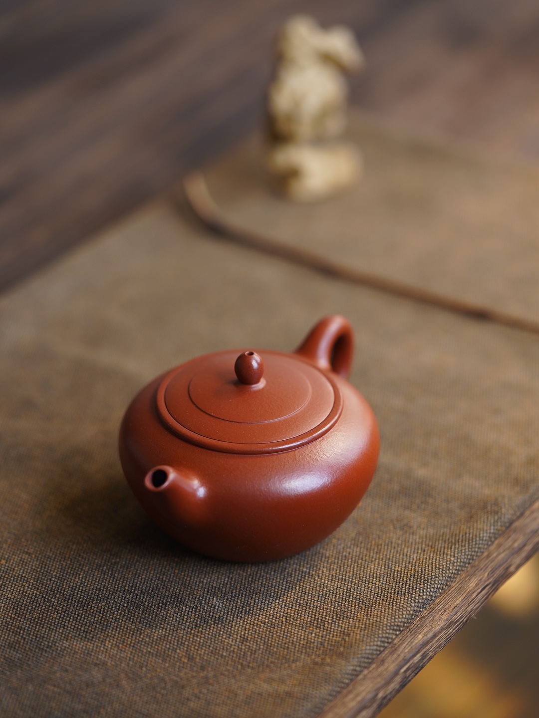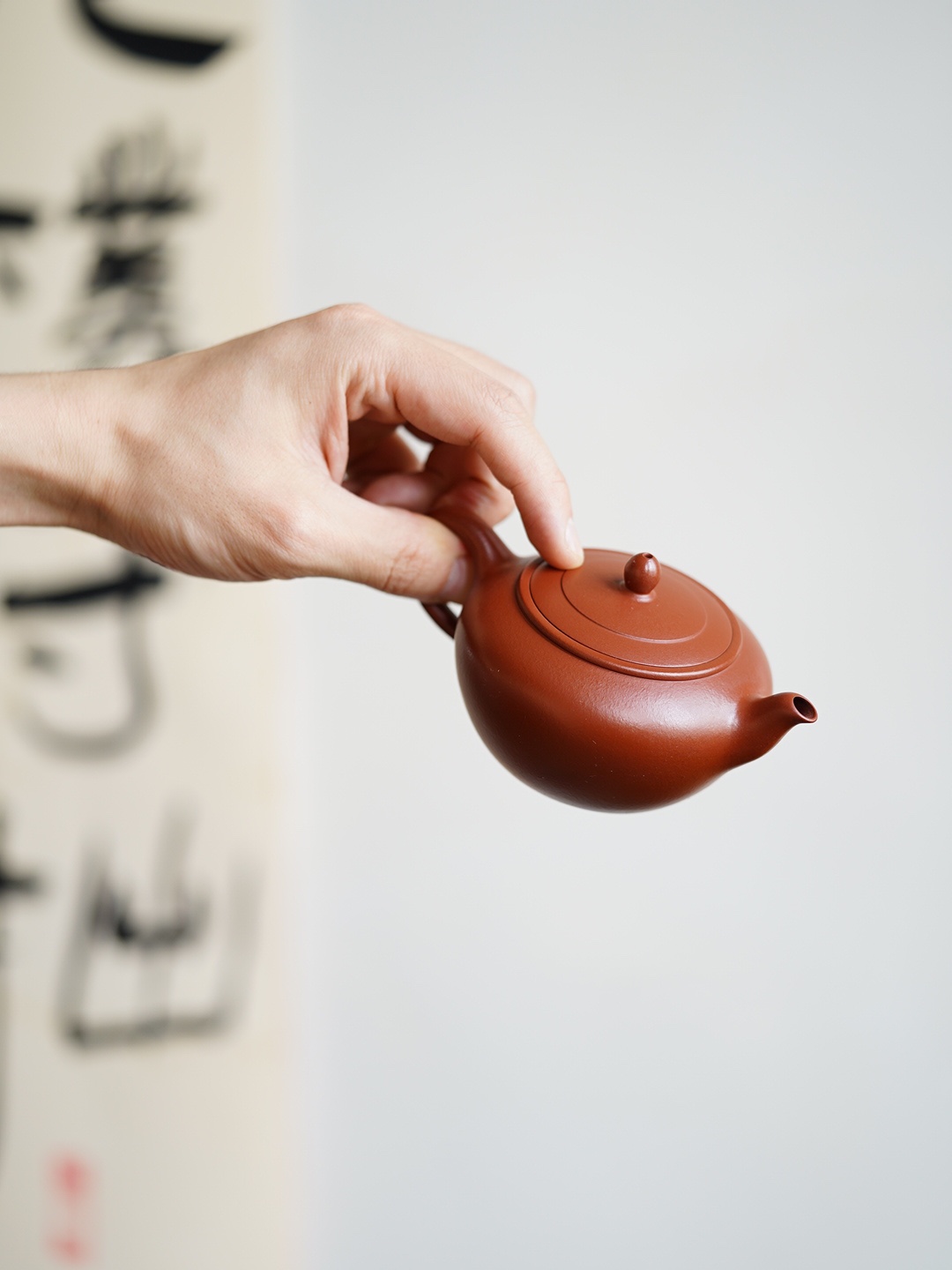 The body resembles the blush on a young girl’s cheek, tempered through seventy-two ancient methods, revealing the clanging sound of gold and stone. The body resembles the outstretched wings of a weary bird returning to the forest. Tracing its curves, one can feel the warmth of the craftsman’s fingertips. When water is poured in, it flows melodiously like the cry of an oriole in a valley. As the water rises and falls, the tea smoke transforms into a green mist, evoking the shadow of a bird passing by, and Qixia Mountain in the evening light.